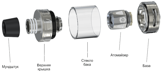 Пользователю есть, где разгуляться. Аж целых 5 вариаций испарителей с различными сопротивлениями и вариациями койлов. Плюс, по заверению производителя, само устройство атомайзера способствует оптимальному балансу между количеством вкуса и пара.