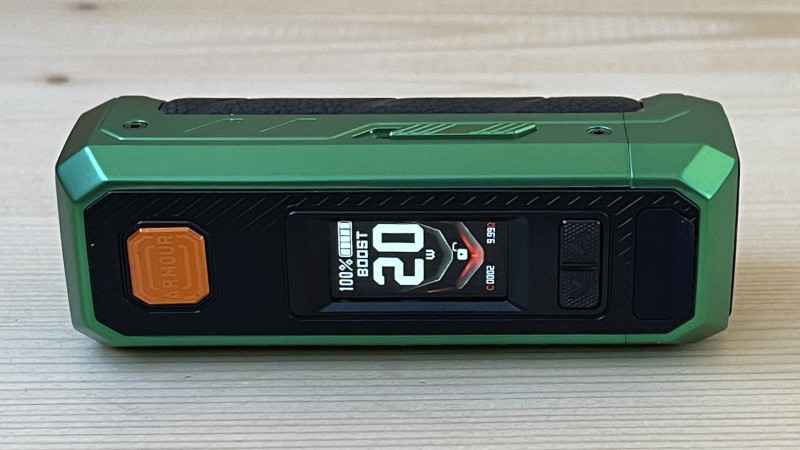 Vaporesso Armour Ultra – классический по дизайну мод с защитой по стандарту IP68, работает от встроенной аккумуляторной батареи внушительной ёмкостью 5500 мАч,