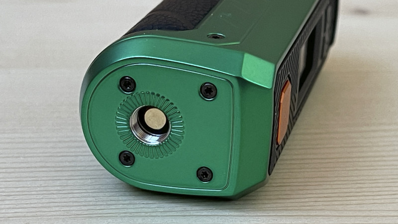 Коннектор 510-й, стальной, с подпружиненным латунным пином. Размеры коннекторной площадки позволяют устанавливать атомайзеры без видимого зависания до 25 мм в диаметре.