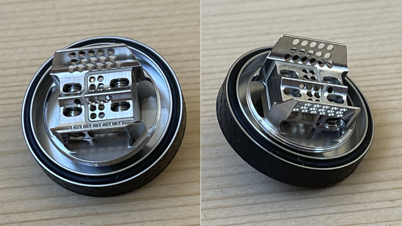Со шлицами в винтах и самой комплектной отверткой никаких проблем за несколько установок спирали не возникло, винты добротные. Обдув в атомайзере нижний и оформлен в виде центральных и боковых слотов.